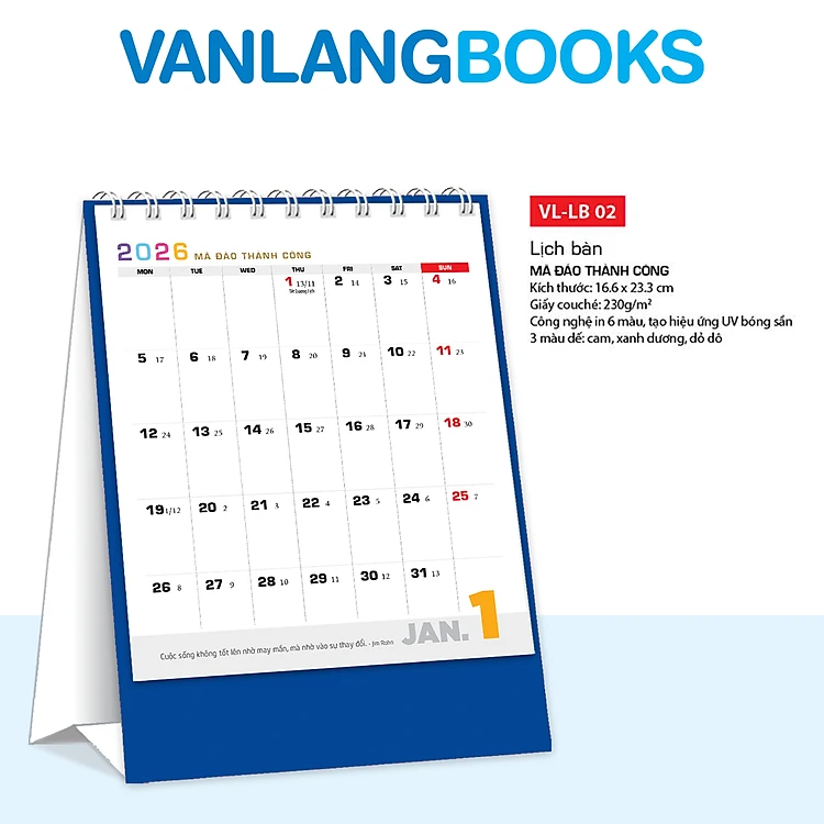 Lịch Bàn 2026 – Mã Đáo Thành Công | Lịch Để Bàn Cao Cấp Vanlangbooks | Mã: VLLB02 - Màu Xanh