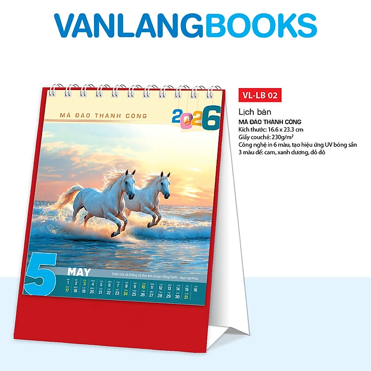 Lịch Bàn 2026 – Mã Đáo Thành Công | Lịch Để Bàn Cao Cấp Vanlangbooks | Mã: VLLB02A - Màu Đỏ