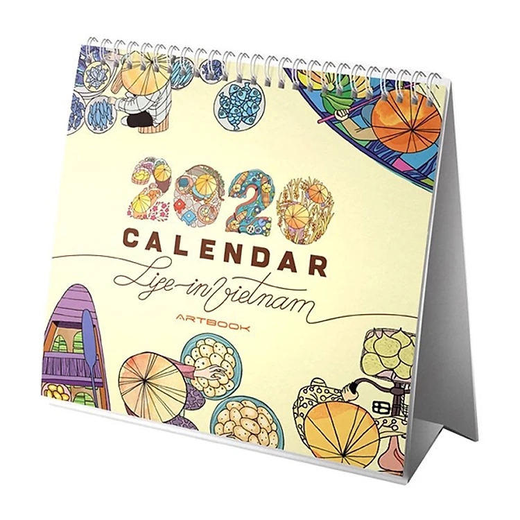• Lịch Bàn Artbook 2020 - Live In VN có ngày dương lịch và âm lịch phối hợp cùng lò xo, giấy ivory cứng cáp lên màu tươi đẹp