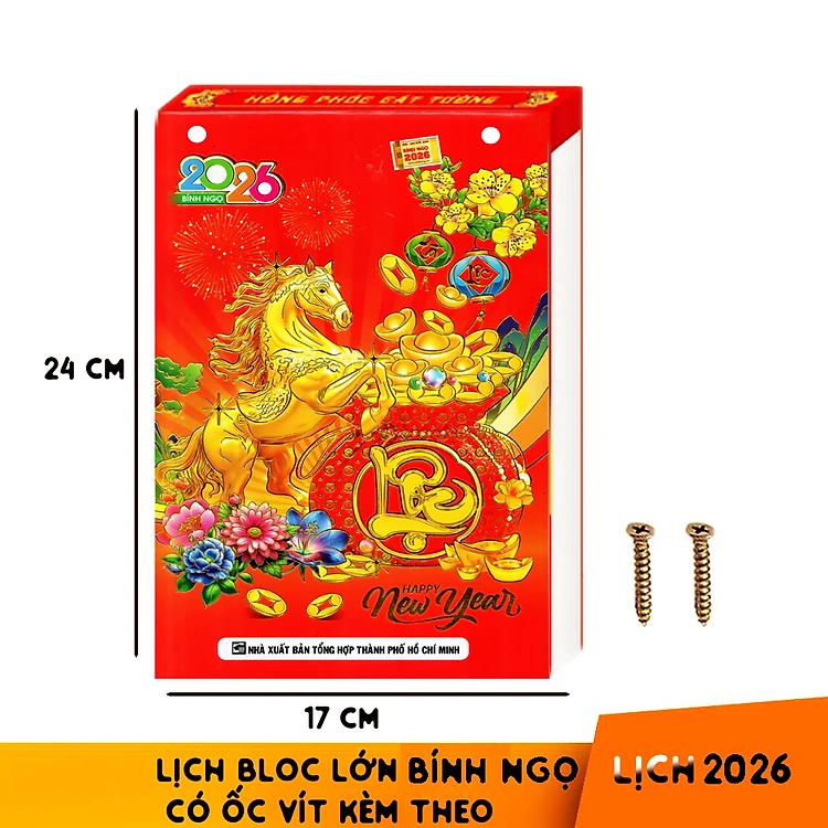 Lịch bloc Cung Chúc tân xuân 2026 có ngày giờ hoàng đạo chính xác giấy bloc lớn 17*26 cm kèm ốc vít có tem niêm yết giấy dày bóng đẹp