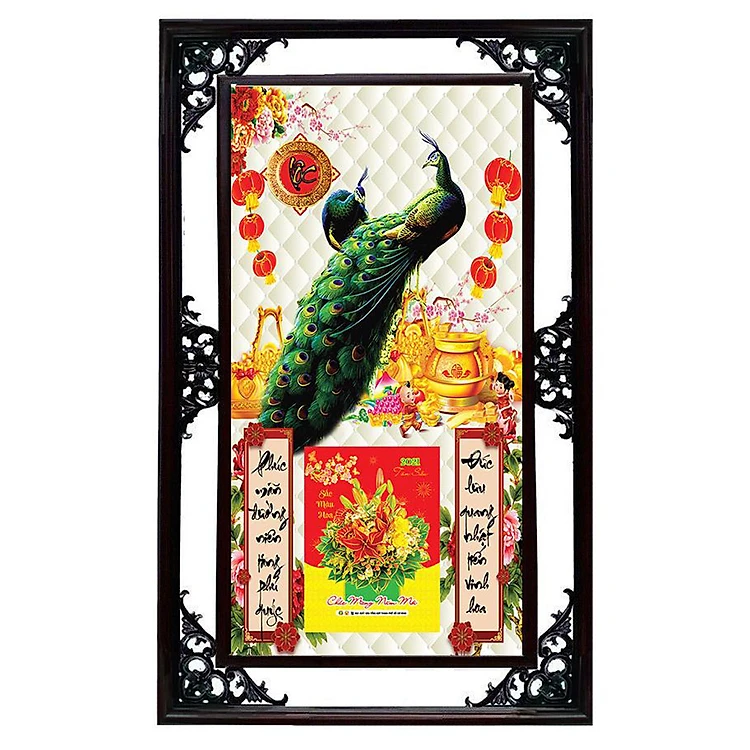 Lịch Cao Cấp 2021 Chim Công 02 Khung Đôi (50x82 Cm)