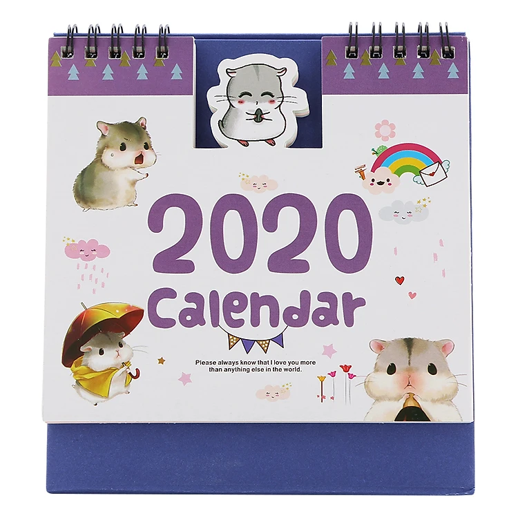 • Lịch Để Bàn 2020 (15 x 16cm) - Hình Chuột Màu Tím có thiết kế từ tháng 09.2019 đến hết 31.12.2020