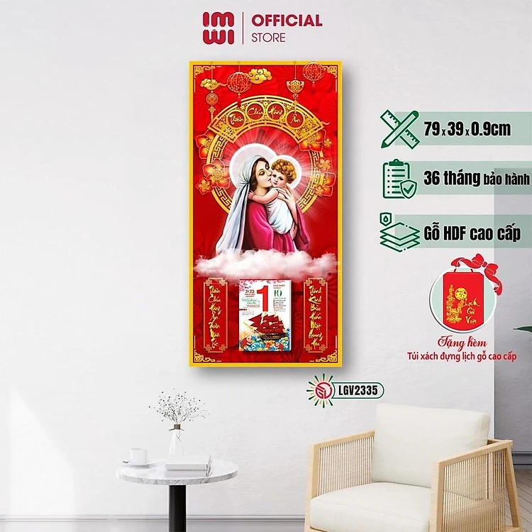 Lịch gỗ Mẹ Maria Bế Chúa Giêsu IMWI LGV2335