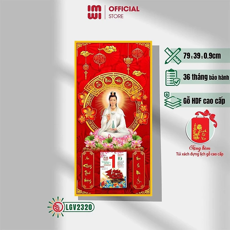 Lịch gỗ Phật Quan Âm IMWI LGV2320 - Lịch phật giáo treo tường