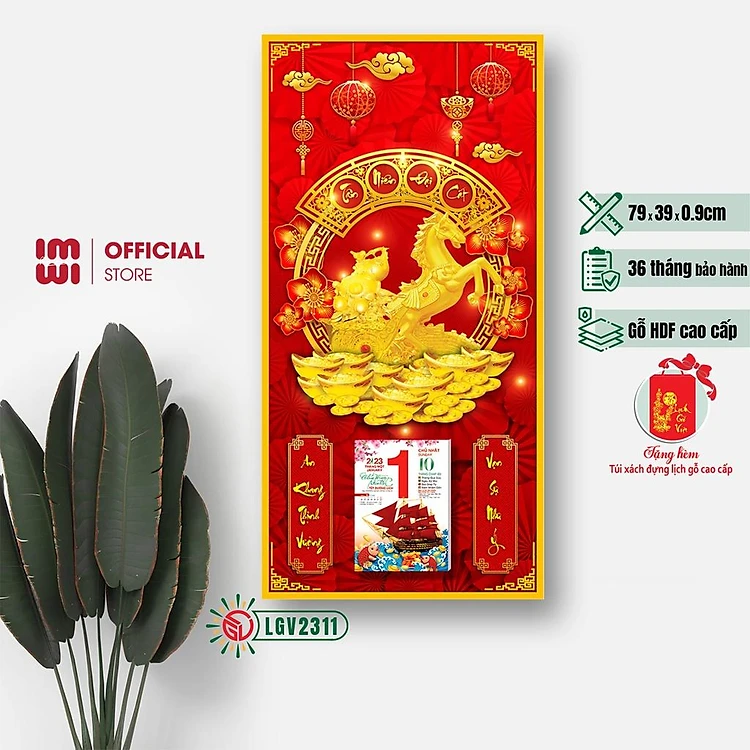 Lịch gỗ phong thủy Kim Mã Phát Tài IMWI LGV2311 - 79cm x 39cm