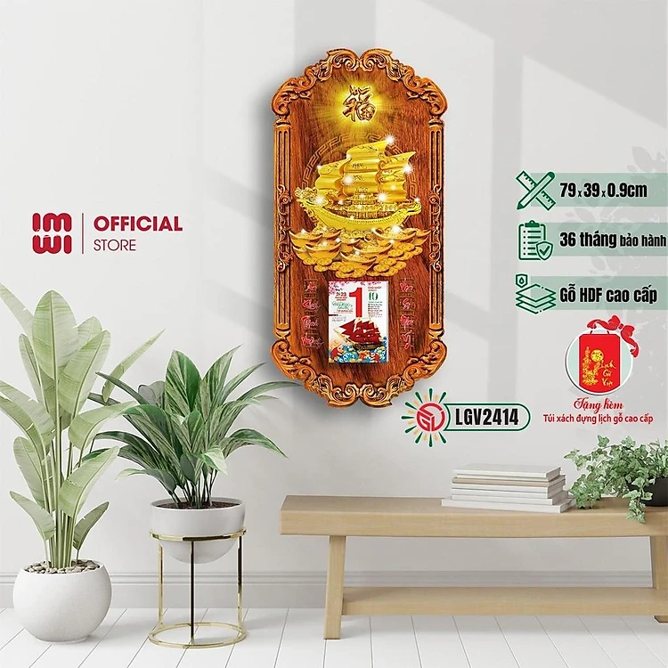Lịch gỗ phong thủy Thuận Bườm Xuôi Gió IMWI GIMIVINA LGV2414
