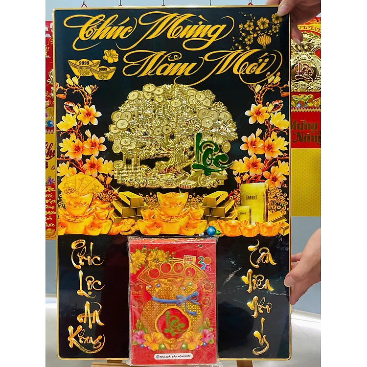 Lịch Tết 2026 - Bìa Gỗ Laminate Tráng Gương Dán Nổi Kích Thước 40x60cm, Gắn Bloc Đại Trọn Bộ (Gồm Bìa + Bloc Lịch)