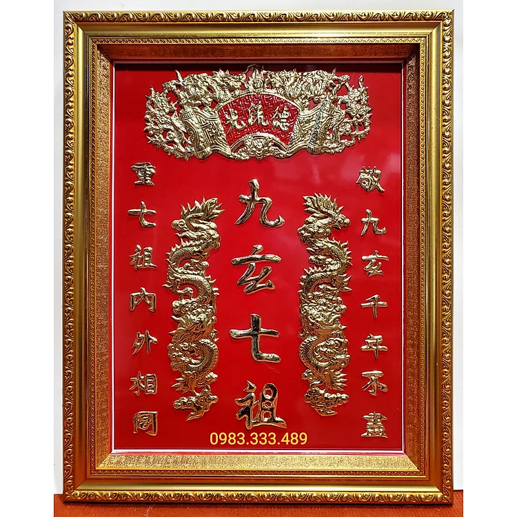 Liễng thờ gia tiên - CỬU HUYỀN THẤT TỔ - Chữ Hán bằng đồng vàng