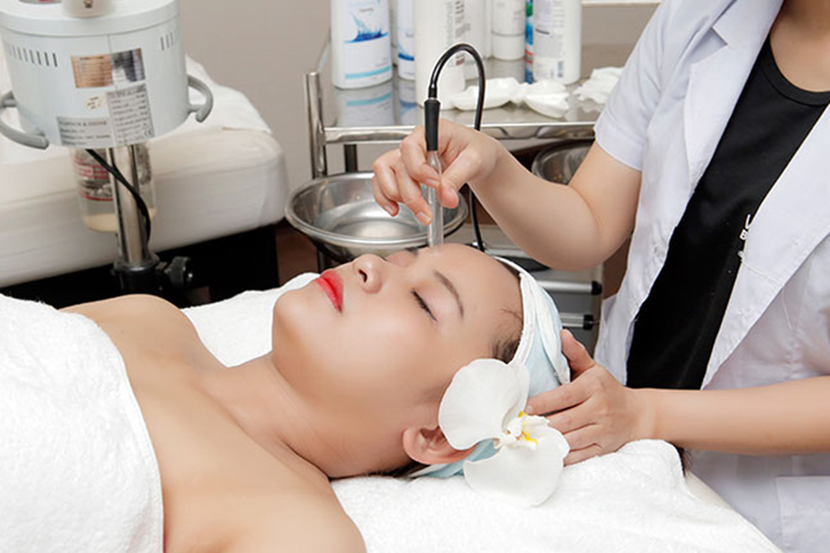 Bước 4: Xông hơi làm sạch sâu từng lỗ chân lông, giúp da ở trạng thái tốt nhất, hấp thụ dưỡng chất tốt hơn. Hút dầu và loại bỏ mụn cám.