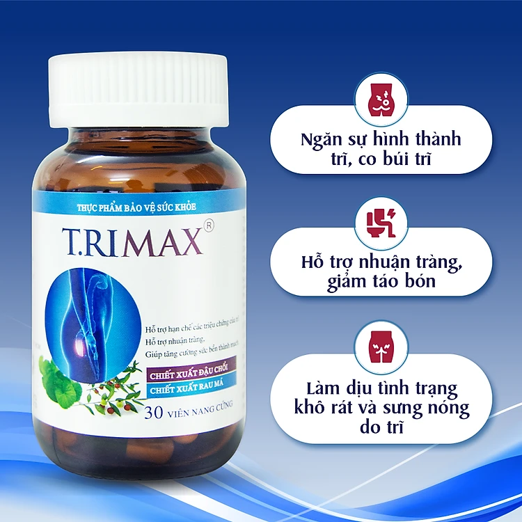 1. VIÊN UỐNG HỖ TRỢ CO THẮT BÚI TRĨ TRIMAX (3 Hộp, Mỗi hộp 30 viên)