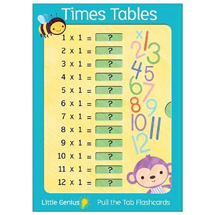 Little Genius Giant Flash This pack of giant flashcards will create a fun new way for children to practise their times tables! Each card allows children to pull the tab on each sum so they can become familiar with the answer and test their knowledge. These cards are a great way to encourage early learning.