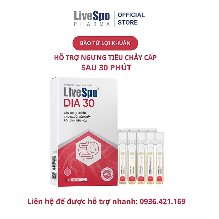 Livespo Spo DIA 30 - Giảm Triệu Chứng Tiêu Chảy Cấp (Nên Có Sẵn Trong Nhà) Hộp 10 ống x 5ml