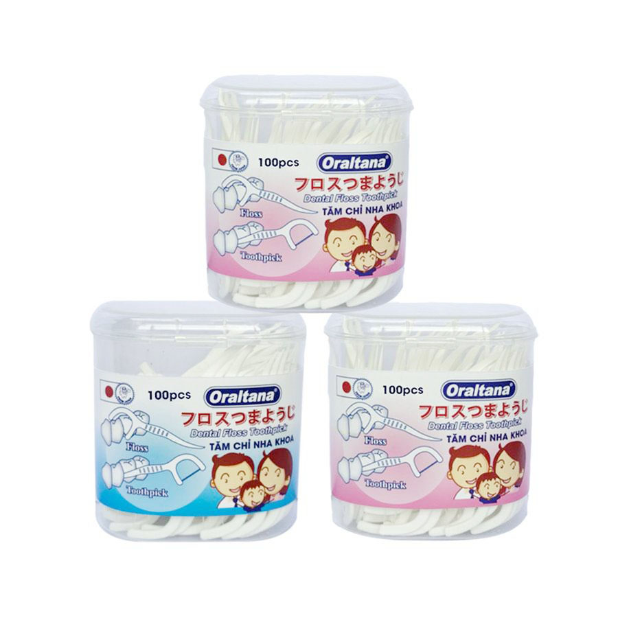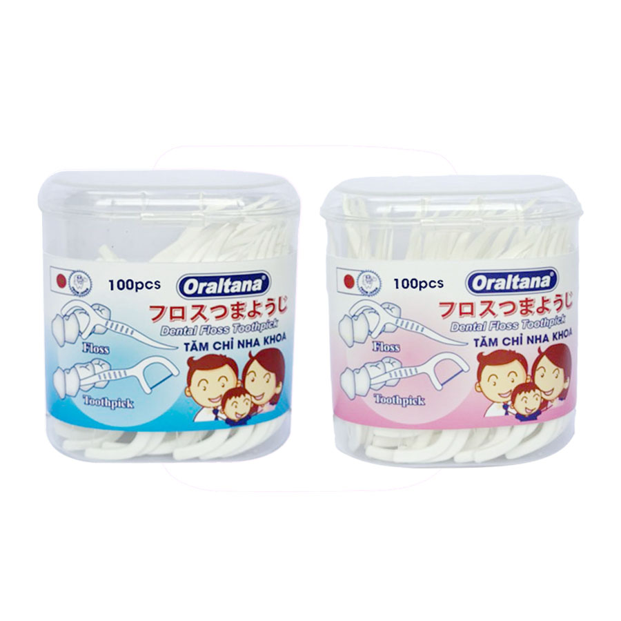 Lọ 100 cái tăm chỉ nha khoa Oraltana mẫu mới vệ sinh răng miệng dễ dàng 2 trong 1