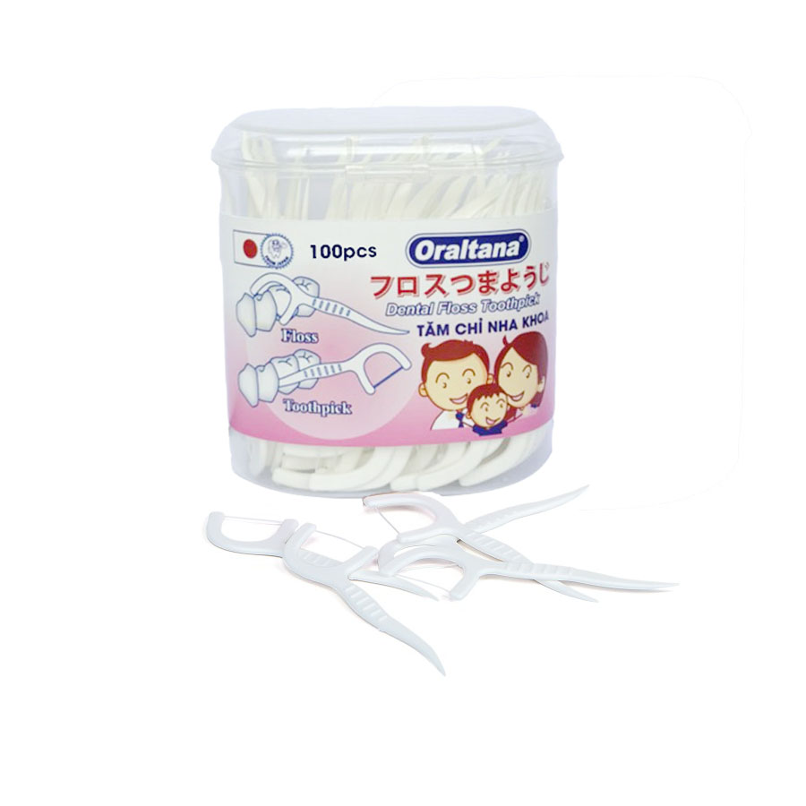 -Tăm chỉ nha khoa Oraltana là sự kết hợp giữa chỉ tơ nha khoa và tăm xỉa răng, một đầu dùng như tăm chỉ nha khoa, một đầu dùng như tăm xỉa răng với chất liệu bằng nhựa mềm không làm hại nướu mà vẫn loại trừ các mảng bám, thức ăn thừa trong khe răng, giúp giữ răng miệng sạch và chắc khỏe.