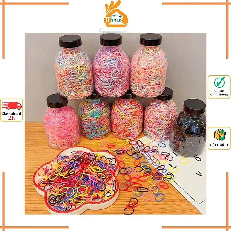 Lọ 1000 Dây Chun Cột Tóc Dùng Cho Các Bé, Nhiều Màu Dễ Thương Không Gây Đau Cho Bé- Giao Ngẫu Nhiên