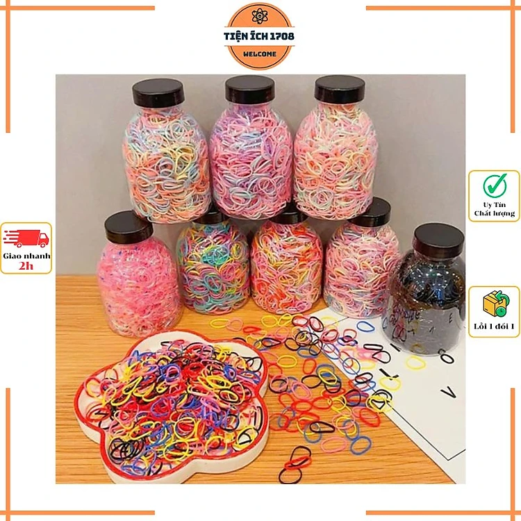 Lọ 1000 Dây Chun Cột Tóc Dùng Cho Các Bé, Nhiều Màu Dễ Thương Không Gây Đau Cho Bé- Giao Ngẫu Nhiên