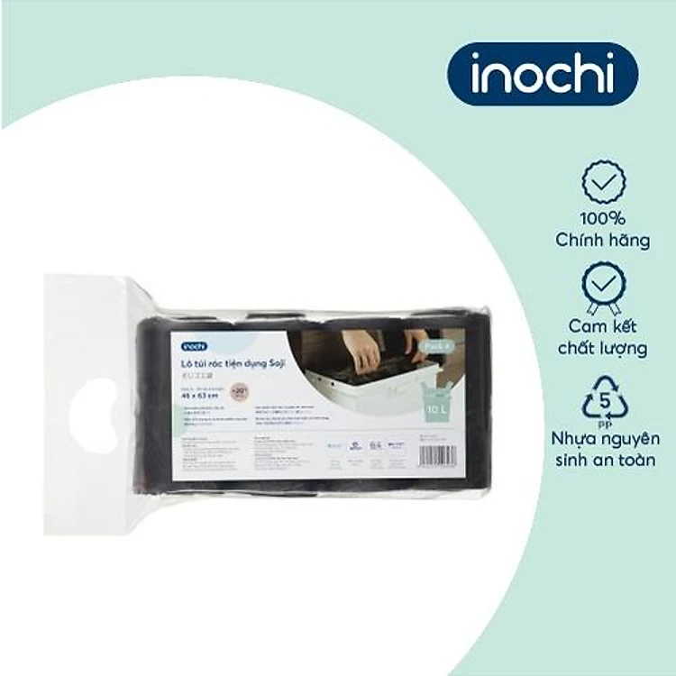 Lô 4 cuộn túi rác tiện dụng Inochi - Soji: 10 Lít / 25 Lít / 50 Lít