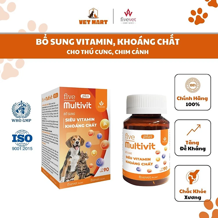 [LỌ 90 VIÊN] FIVE-MULTIVIT (PLUS) - Bổ Sung Siêu Vitamin Và Khoáng Chất Cho Thú Cưng, Chim Cảnh_Fivevet