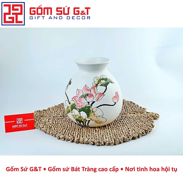 Lọ hoa dáng rọ vẽ sen Gốm Sứ G&T