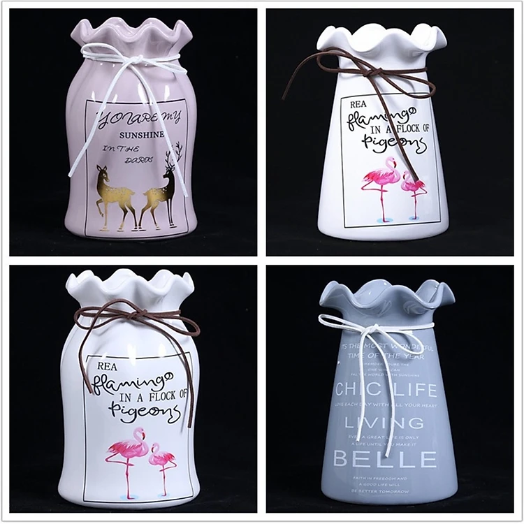 Lọ hoa gốm sứ, bình cắm hoa trang trí phong cách Bắc âu in hình chim hồng hạc độc đáo LS-01