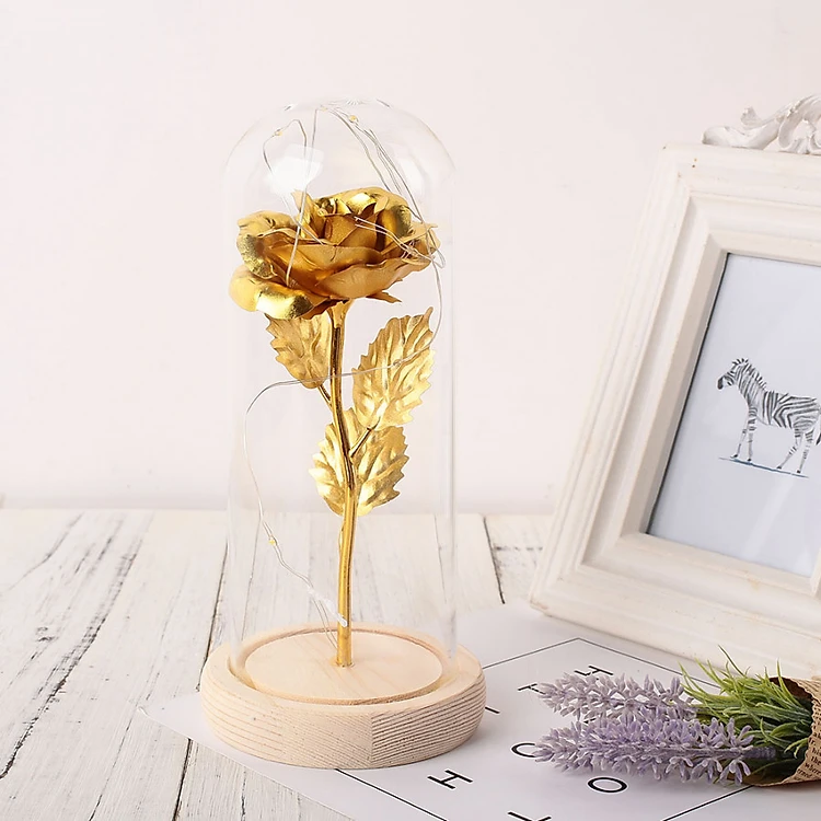 Lọ Hoa Hồng Vĩnh Cửu Vàng Lá 24k Có Đèn LED