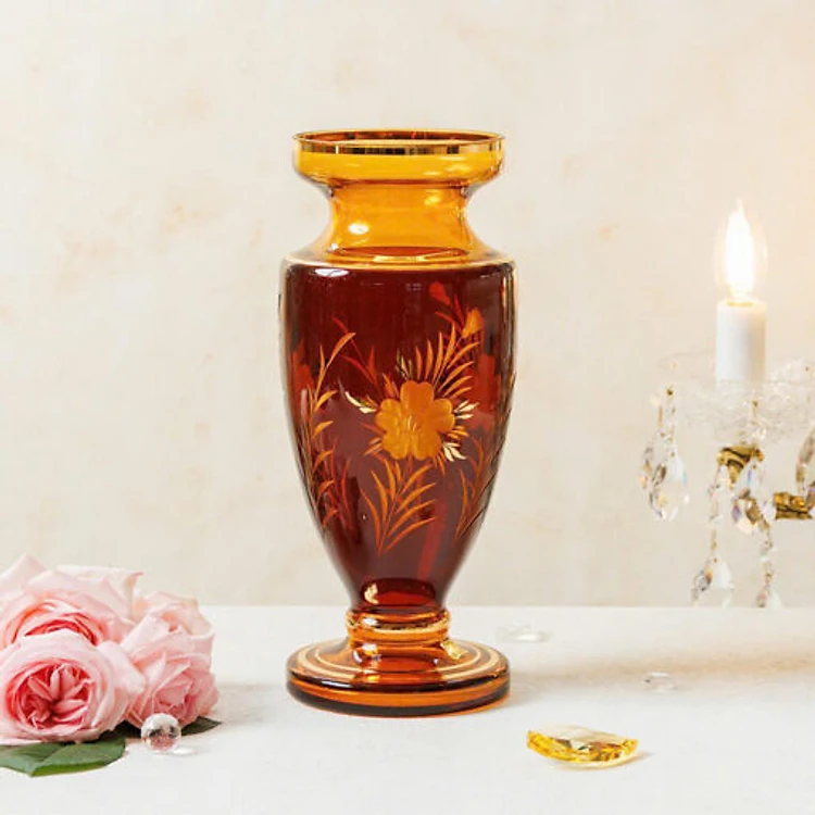 Lọ hoa pha lê Tiệp Khắc màu hổ phách Hàng chính hãng