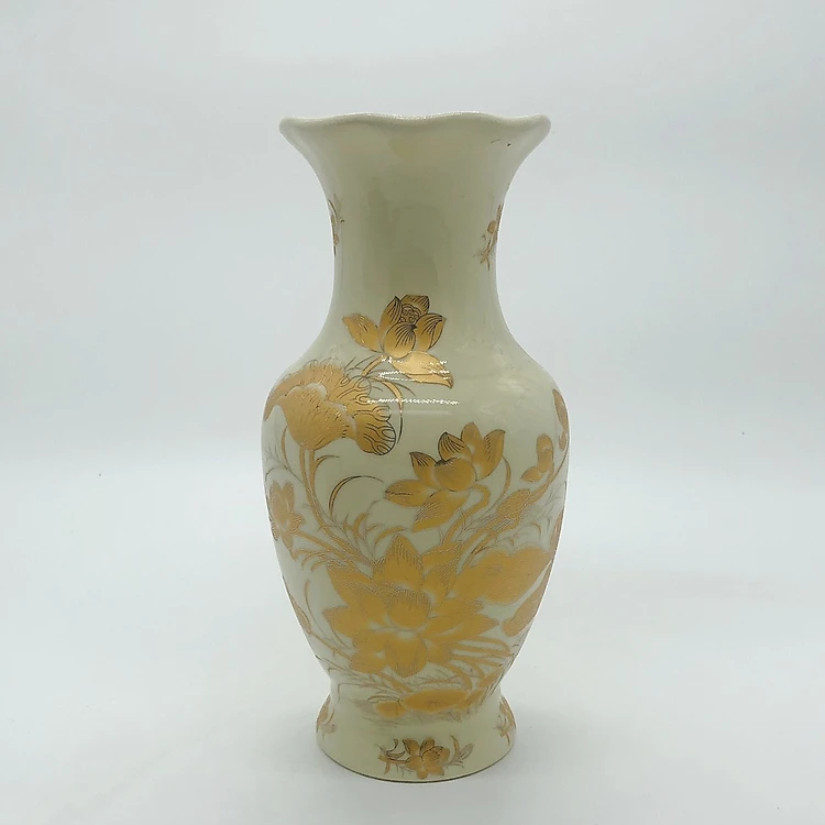 Lọ hoa thờ men vàng kim - họa tiết sen vàng