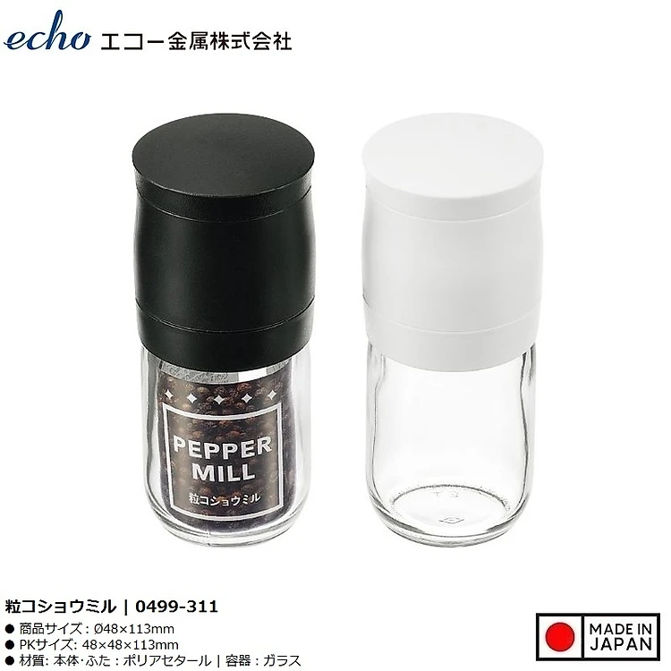 Lọ/ hũ xay tiêu cầm tay thủy tinh Echo Metal - Hàng Nội Địa Nhật Bản