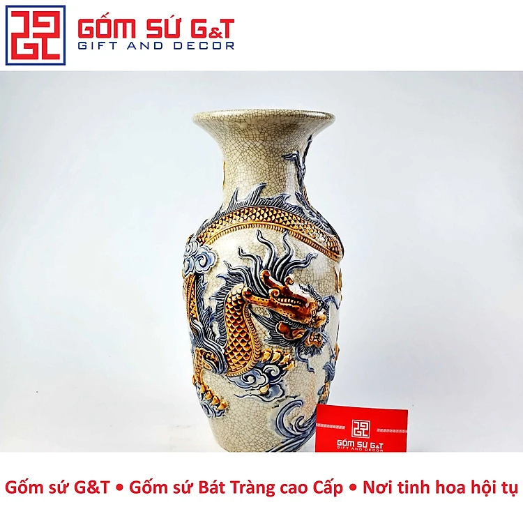 Lọ lộc bình men rạn rồng nổi Gốm Sứ G&T