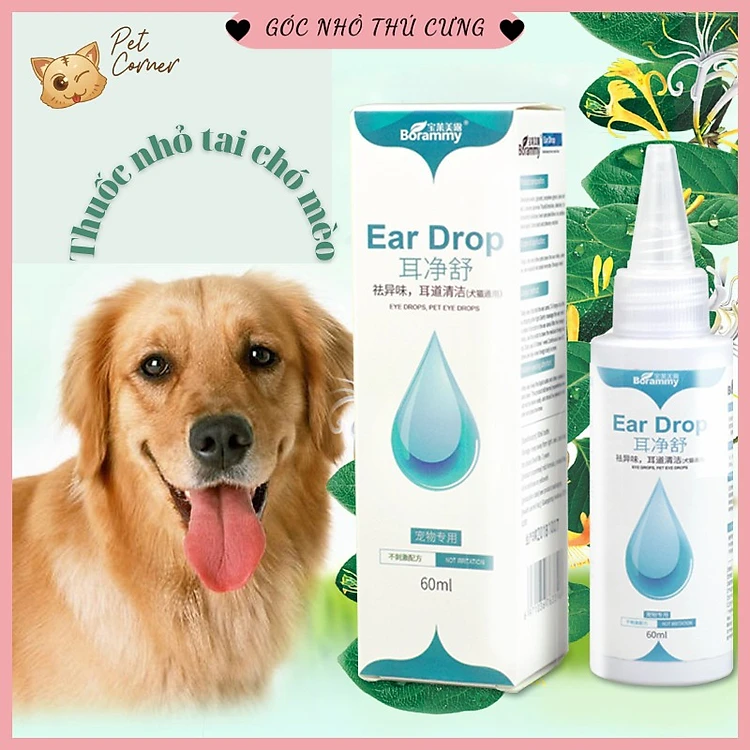 Lọ nhỏ tai cho chó mèo Borammy 60ml (Dung dịch vệ sinh tai cho thú cưng chiết xuất thiên nhiên)