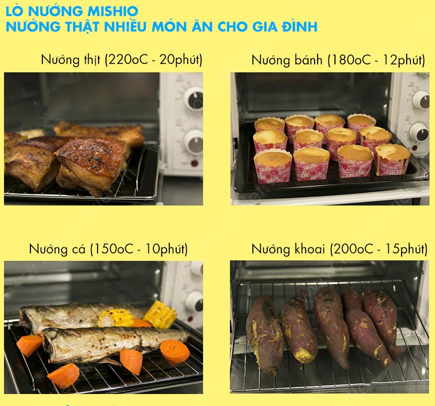 - Lò Nướng Điện Mishio được thiết kế với vỏ ngoài bằng thép không gỉ được sơn tĩnh điện bền đẹp với thời gian và nhiệt độ.