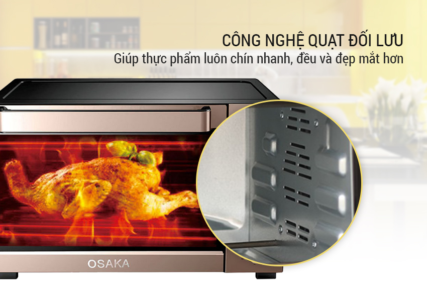 Công nghệ quạt đối lưu hiện nay đang được rất nhiều dòng lò nướng cao cấp sử dụng, công nghệ này giúp cho khí nóng lan tỏa tới từng góc nhỏ nhất của thực phẩm. Nhờ đó, thực phẩm luôn chín nhanh, đều và đẹp mắt hơn, cho bữa ăn thêm ngon miệng.