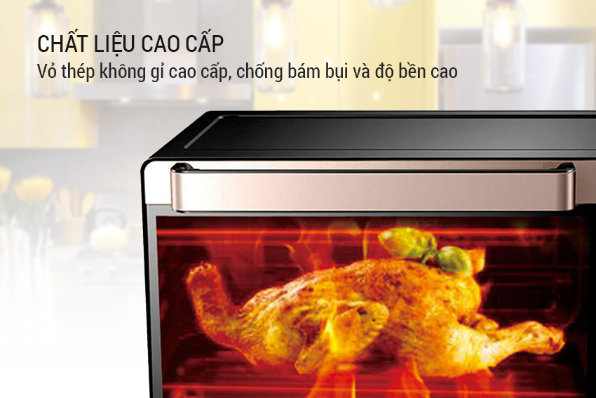 Vỏ ngoài của máy làm từ thép không gỉ cao cấp tạo sự bền bỉ trong quá trình sử dụng. Đồng thời chất liệu thép không gỉ chống bám bụi bẩn rất tốt cho phép người dùng có thể dễ dàng lau chùi, vệ sinh sau mỗi lần sử dụng. Màn hình LED hiển thị chức năng của lò giúp người dùng dễ dàng sử dụng cũng như điều chỉnh.