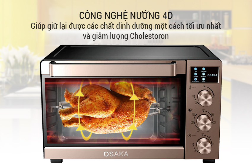 Công nghệ nướng 4D Air Heatting là một công nghệ cao cấp giúp cho thực phẩm luôn giữ lại được các chất dinh dưỡng một cách tối ưu nhất và giảm lượng Cholesterol có trong thực phẩm, nhờ đó, hạn chế tối đa nguy cơ về bệnh tim mạch, béo phì cho người dùng.