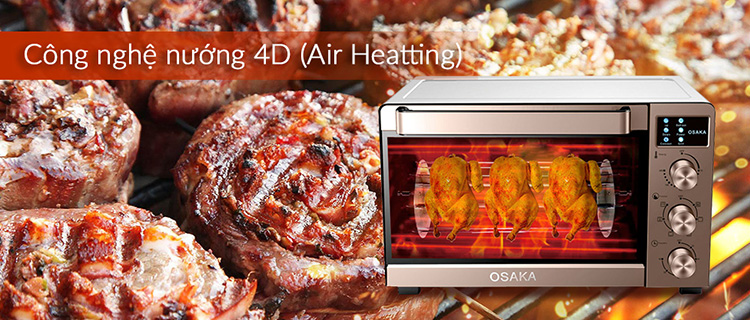 Công nghệ nướng 4D Air Heatting là một công nghệ cao cấp giúp cho thực phẩm luôn giữ lại được các chất dinh dưỡng một cách tối ưu nhất và giảm lượng Cholesteron có trong thực phẩm. Nhờ đó, hạn chế tối đa nguy cơ về bệnh tim mạch, béo phì cho người dùng.