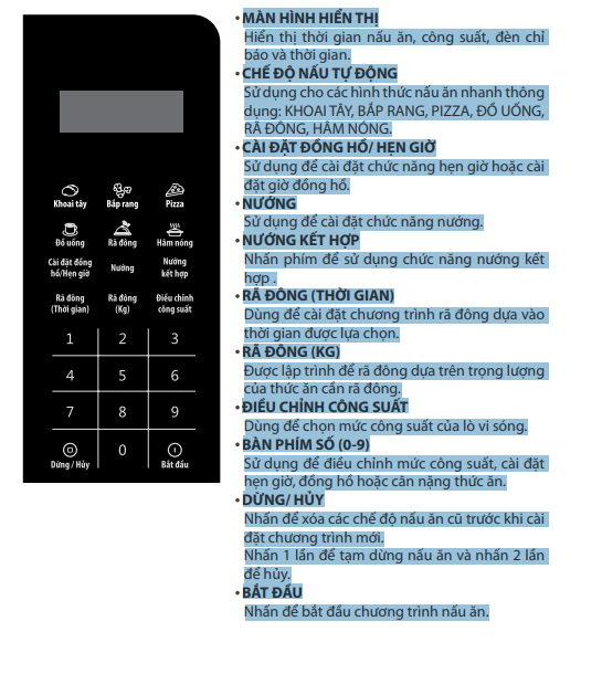 Hiển thị thời gian nấu ăn, công suất, đèn chỉ