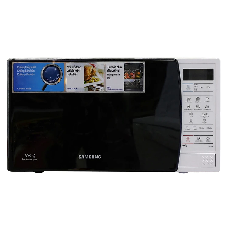 Lò Vi Sóng Có Nướng Samsung GE731K/XSV - 20L (Trắng Đen) có khoang lò được tráng men gốm Ceramic có khả năng chịu nhiệt tốt, sáng bóng, chống bám bẩn, bám mùi tốt giúp bạn dễ dàng chùi rửa, vệ sinh cho lò.