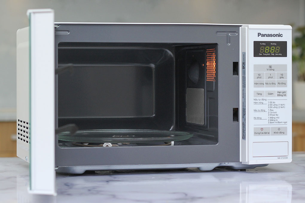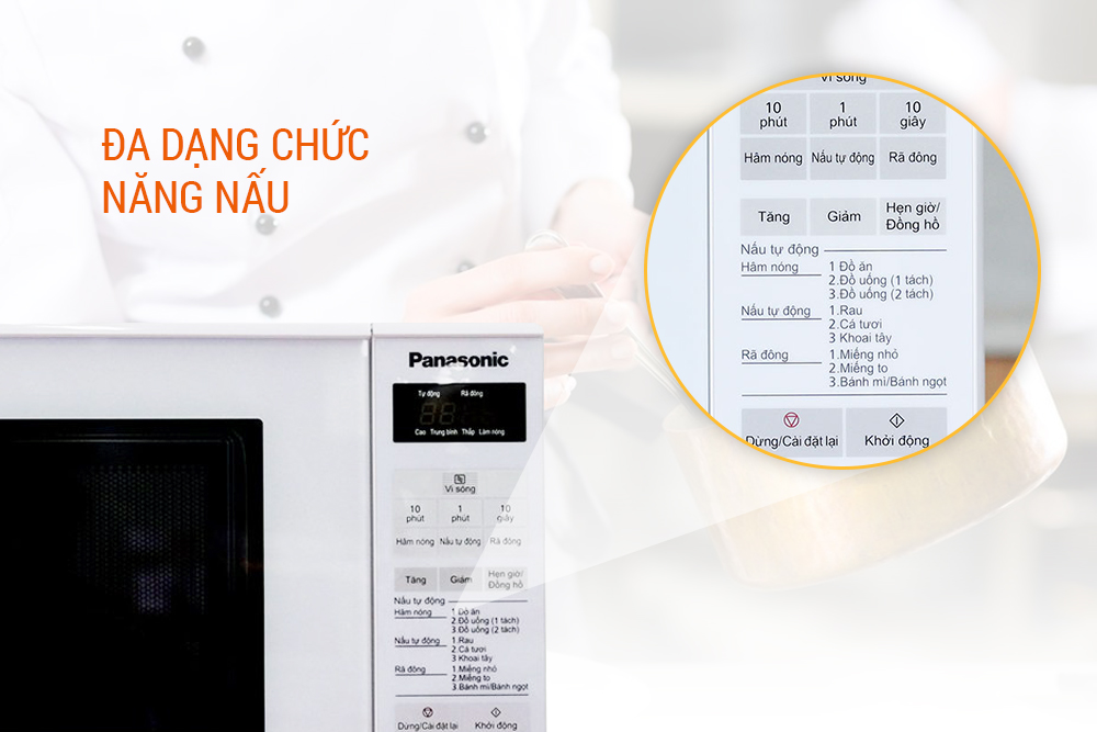 Lò Vi Sóng Panasonic thiết kế các phím điều khiển có chú thích bằng tiếng Việt giúp bạn dễ dàng sử dụng, màn hình kỹ thuật số hiển thị thời gian nấu rõ ràng giúp bạn tiện theo dõi quá trình nấu nướng nhằm đảm bảo hương vị thức ăn sau khi được chế biến.