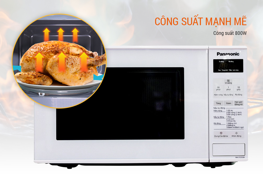 Lò Vi Sóng PALM-NN-ST253WYUE hoạt động mạnh mẽ với công suất 800W, giúp thức ăn chín nhanh, đều và giữ được hương vị và màu sắc tươi ngon của thực phẩm. Bên cạnh đó, dung tích khoang lò lên đến 20 lít, cùng đĩa xoay lớn 255 mm, giúp bạn hâm nấu được nhiều thức ăn cùng lúc, tiết kiệm được nhiều điện năng và thời gian vào bếp. Ngoài ra, không gian khoang lò lớn còn giúp bạn chinh phục được mọi thực phẩm dạng khối lớn, khó nhằn như gà, vịt nguyên cho bữa ăn hàng ngày của gia đình bạn thêm phong phú và đa dạng.
