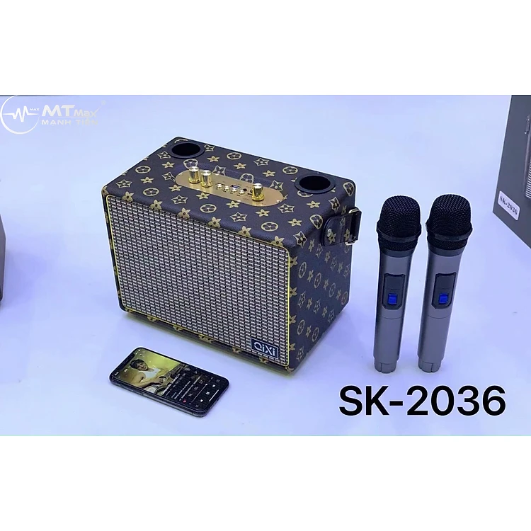 Loa Bluetooth Karaoke QIXI SK-2036 , Tặng Kèm 2 Micro Không Dây Cao Cấp , Hát Karaoke Nghe Nhạc Bass mạnh -Hàng Chính Hãng