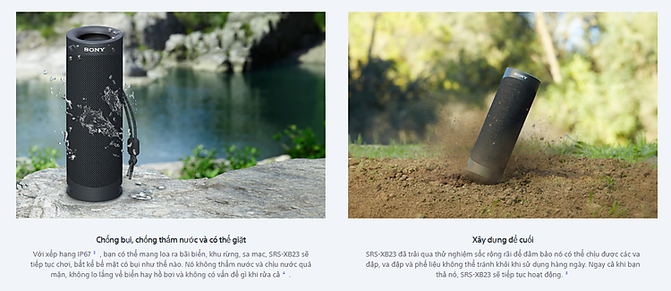 Đặc biệt hơn, nhờ những công nghệ cao cấp, việc sử dụng mica gia cố nón loa và nắp bụi được thiết kế cứ cốt thép cứng và nhẹ góp phần tạo nên chất lượng âm thanh chuẩn xác đồng thời Loa di động Sony SRS-XB23 có thể chống va đập, rơi loa cực kì tốt.