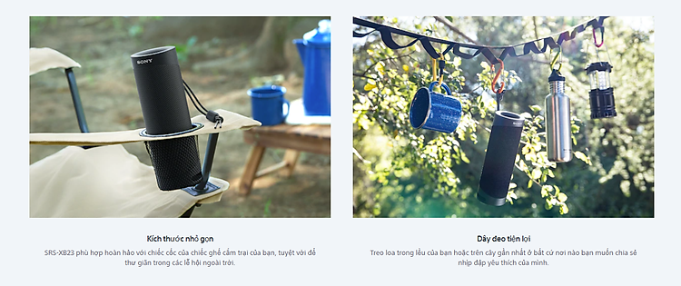 Loa di động Sony SRS-XB23 mang tới cho người dùng một trọng lượng cực kì nhẹ nhàng, dễ dàng mang đi theo mình đến mọi nơi, Loa di động Sony SRS-XB23 còn được tích hợp thêm dây đeo cực kì tiện lợi, mang tới khả năng treo loa trên cây, trong lều hoặc bất kì nơi đâu mà người dùng mong muốn
