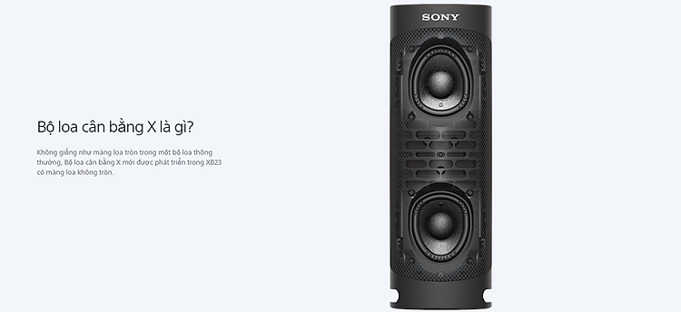 Loa di động Sony SRS-XB23 Sở hữu hệ thống loa hoàn toàn mới có màng loa không tròn được phát triển từ Sony: X-Balanced giúp tăng áp suất âm thanh, giảm méo tiếng, âm thanh được rõ ràng hơn,mở rộng sân khấu âm thanh hơn
