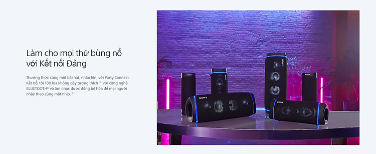 Loa di động Sony SRS-XB23 Tích hợp tính năng Party Connect, kết nối tới 100 loa không dây (Chỉ tương thích giữa SRS-XB43, SRS-XB33, SRS-XB23)