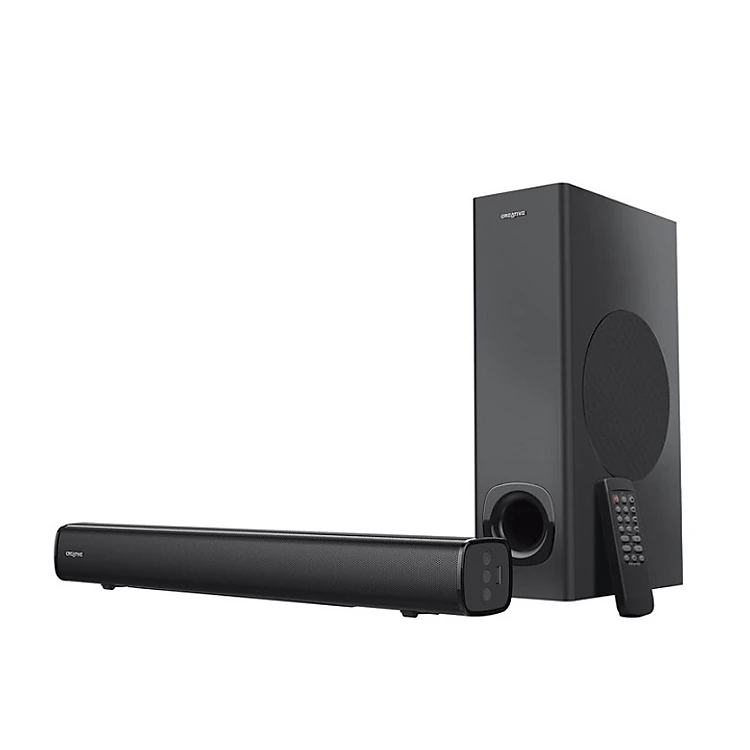 Loa Creative Stage: Loa 2.1 Soundbar dưới màn hình hiệu suất cao với Loa siêu trầm cho TV, Máy tính và Màn hình Ultrawide, Kết nối: Optical, jack 3.5mm/ USB, Bluetooth