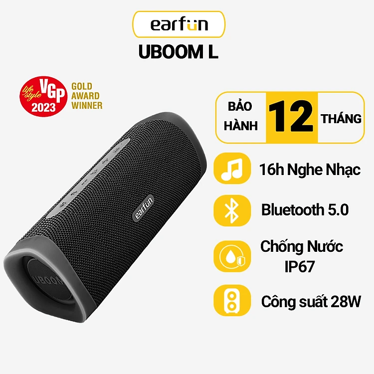 Loa di động EarFun UBOOM L - Bluetooth 5.0, Chống nước IP67, Pin 16 giờ, Kết hợp 2 loa Stereo - Hàng chính hãng