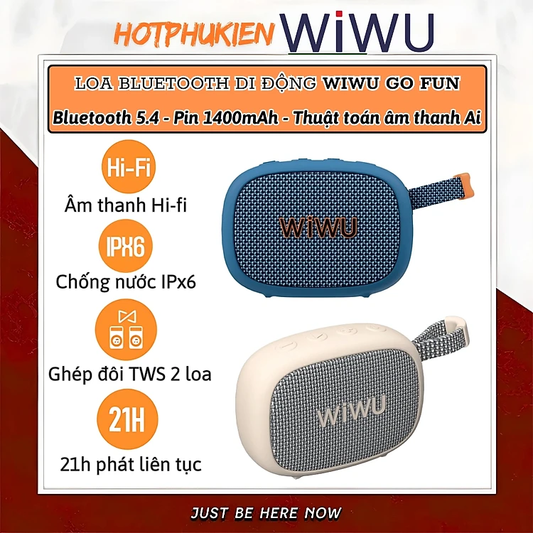 Loa di động thể thao magnetic bluetooth V5.4 kết nối không dây 10m, bass mạnh, chống nước IPx6 hiệu WIWU GO FUN - kết nối 2 loa TWS 1 chạm, sử dụng 21h liên tục cho iPhone iPad Oppo huawei Vivo - Hàng nhập khẩu