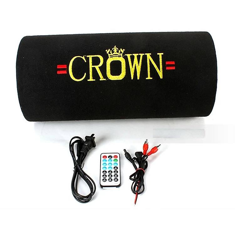 Chiếc loa Crown có kích thước khá vừa vặn, với chiều dài 31cm và chiều cao 16cm phù hợp với nhiều vị trí trong phòng cũng như trong ô tô. Với thiết kế hình trụ tròn, màu đen sang trọng cùng logo crown màu vàng được thêu khá cẩn thận tạo được sự nổi bật cần thiết cho loa.