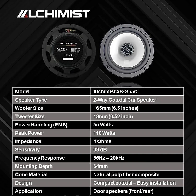 Loa đồng trục ô tô Alchimist AS-G65C - Lắp đặt cánh cửa sau Bass mạnh, Âm thanh Hi-Fi chi tiết