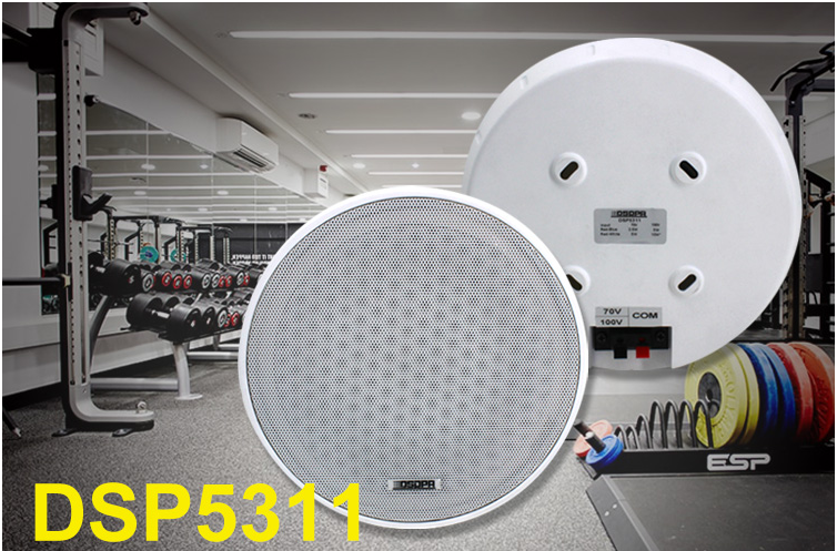 DSP5311 là loa trần gắn trên bề mặt với bộ biến áp 70v / 100v tích hợp. Truyền 70v / 100v được thực hiện ở chế độ điện áp cao, dòng điện thấp, giúp truyền khoảng cách dài hơn và kết nối song song với nhiều loa.